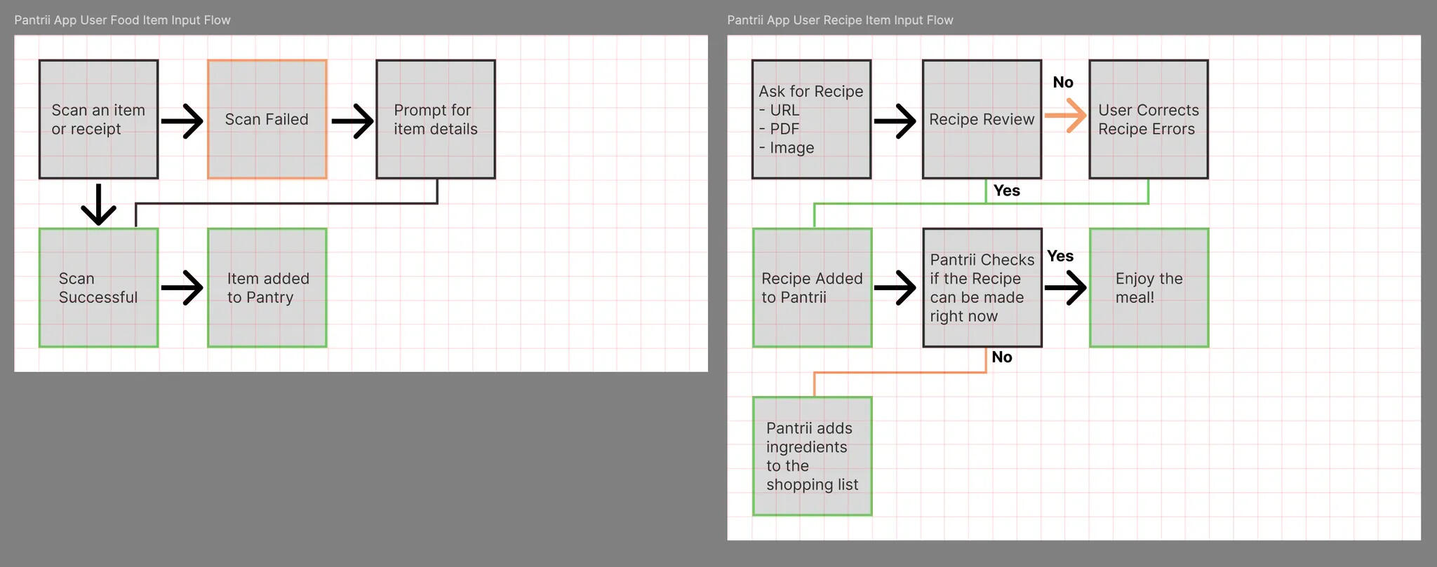 • Mapped user flows for scanning, inventory management, and recipe-triggered planning